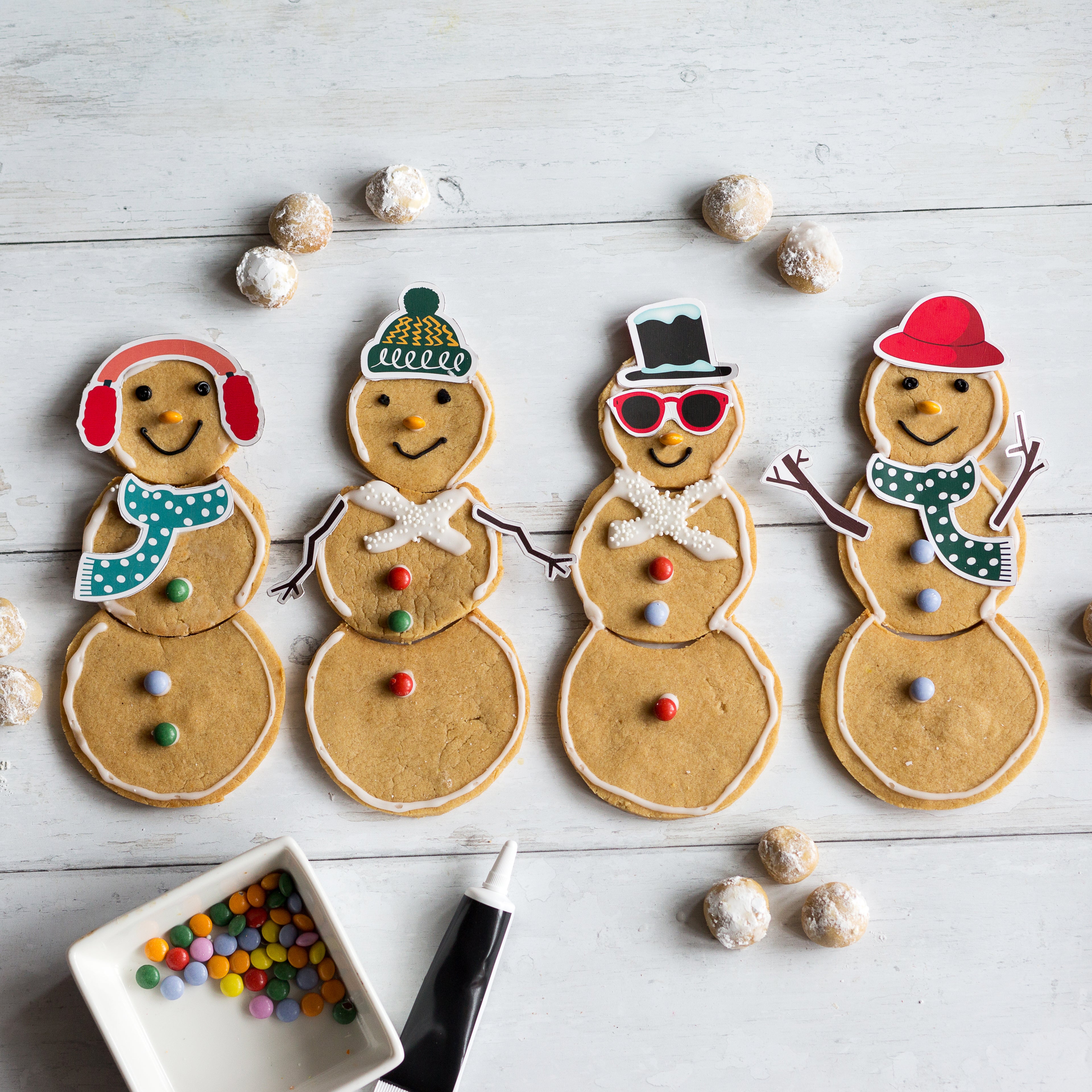 But the fun doesn’t stop at baking… Once your biscuits are cooled, it’s time to dress your snowman! Use the clothing pieces and accessories included in the kit to give your frosty friend a scarf, hat, buttons, and more — every snowman will be unique.