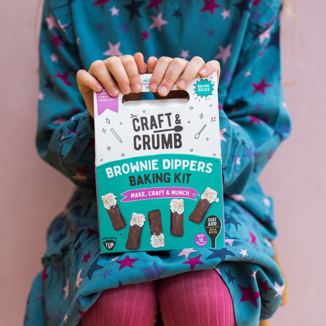 Bake, dip, decorate, and create with our Brownie Dipper Bake & Craft Kit – a fun activity box where kids bake delicious brownie dippers, coat them in icing for dipping, add colourful sprinkles, and craft their own brownie serving tray.